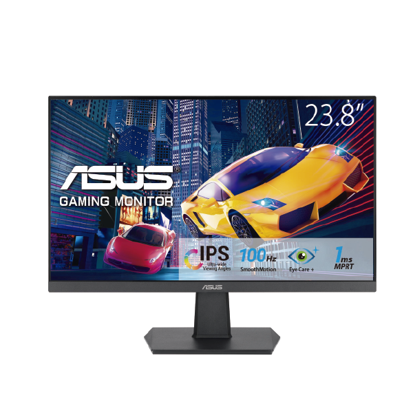El monitor gaming Eye Care ASUS VA24EHF cuenta con un panel IPS de 23,8 pulgadas con resolución Full HD (1920 x 1080), que proporciona un panel de ángulo de visión amplio de 178° y una calidad de imagen vívida. Con una rápida frecuencia de actualización de 100 Hz y tecnología Adaptive-Sync para eliminar el screen tearing y las velocidades de fotogramas entrecortadas para una experiencia más fluida que nunca. También cuenta con tecnologías Flicker-free y Low Blue Light certificadas por TÜV Rheinland para garantizar una experiencia de visualización cómoda.