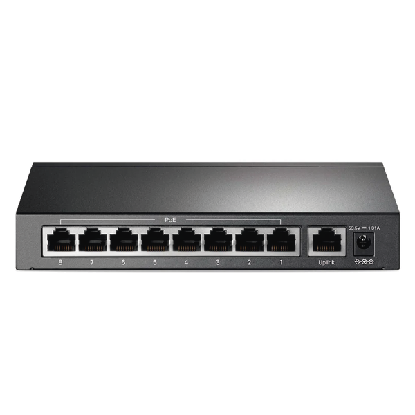 - 8 puertos PoE+ transfieren datos y energía a través de cables individuales